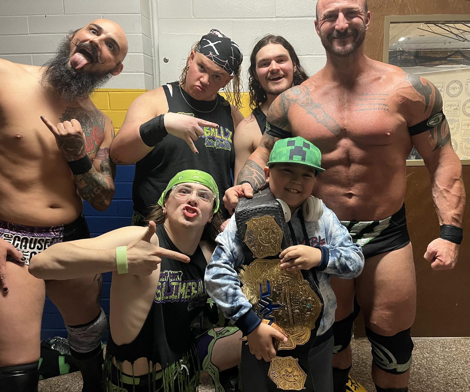 Tenzin (center) with wrestlers from New York Wrestling Connection.