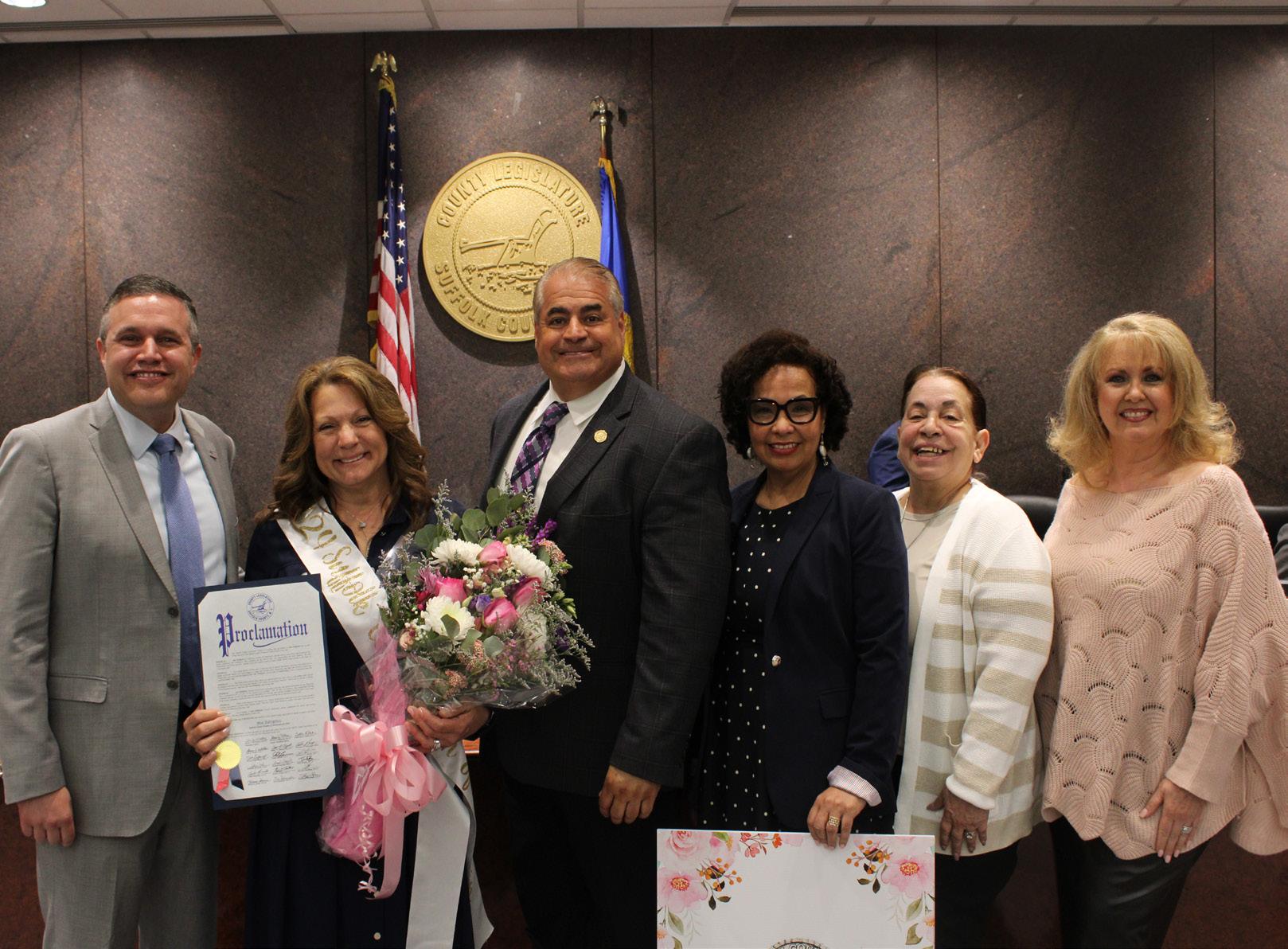 (Left to right) Brookhaven Clerk LaValle, Ann Pellegrino, Legislator Caracappa, Grace Ioannidis, Legislator Kennedy, Twila Silverman (Credit - Matt Meduri)