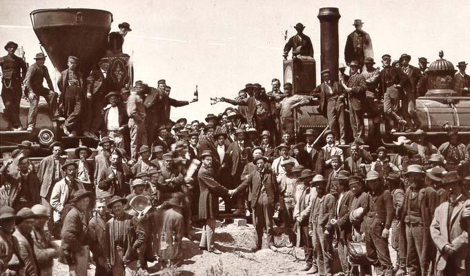 Golden Spike driven, completing the first U.S. Transcontinental Railroad at Promontory Summit, Utah, and connecting the Central Pacific Railroad with the Union Pacific