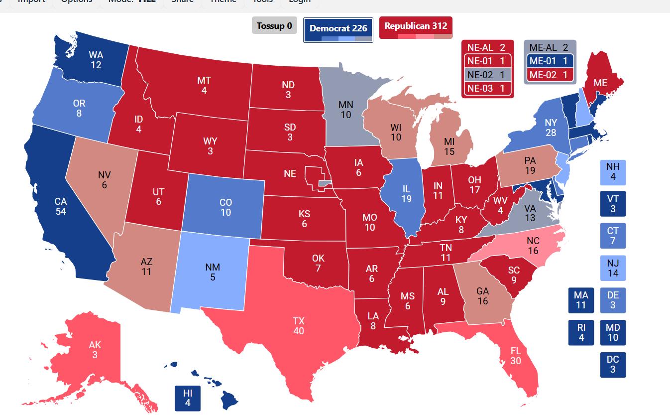 A realistic best-case scenario for Trump is our forecast: 312 electoral votes. He could repeat his 306 total in 2016 if he were to lose Nevada and win everything else.