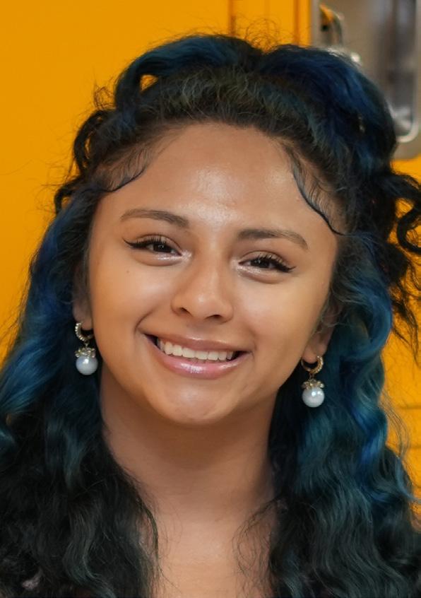 three more spirits. Julianna Rezza graced the stage with an angelic aura, playing The Ghost of Christmas Past. Radiant and glowing in a magnificent white, glittering gown, Rezza’s firm but gentle voice resonated throughout the theatre. Theatre Three veteran Scott Hofer is a natural-born comedian. His spot-on portrayal of The Ghost of Christmas Present offered some muchneeded comedic relief before the gigantic, ghastly, gruesome Ghost of Christmas Yet to Come prowls grimly across the stage, forewarning Scrooge of some future, possible, tragic events, including Tiny Tim’s death, if Scrooge does not change his greedy ways. A big round of applause goes out to Steven Uihlein for expertly manning this larger-than-life costume.