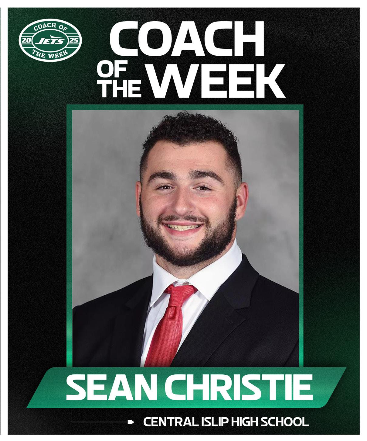 Sean Christie of Central Islip High School in Central Islip, NY has been named this week’s New York Jets High School Coach of the Week. Coach Christie will receive a $1,000 donation to benefit the school’s football program. Along with the monetary award, Central Islip will receive an automatic bid to compete in the 2026 New York Jets 11-ON Tournament.