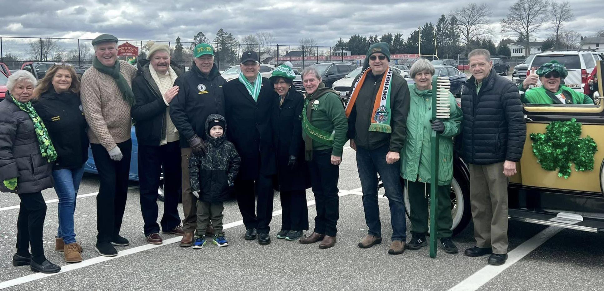 St. James’ St. Patrick’s Day Parade went off without a hitch under the direction of Kathleen Weber, president of the St. James Chamber of Commerce. Town of Smithtown Supervisor Ed Wertheim was selected as the parade’s Grand Marshall. Wehrheim led a gaggle of elected officials in the parade route before taking his place beside several officials on the reviewing stand, greeting four pipe bands, well over a dozen fire trucks and a host of local