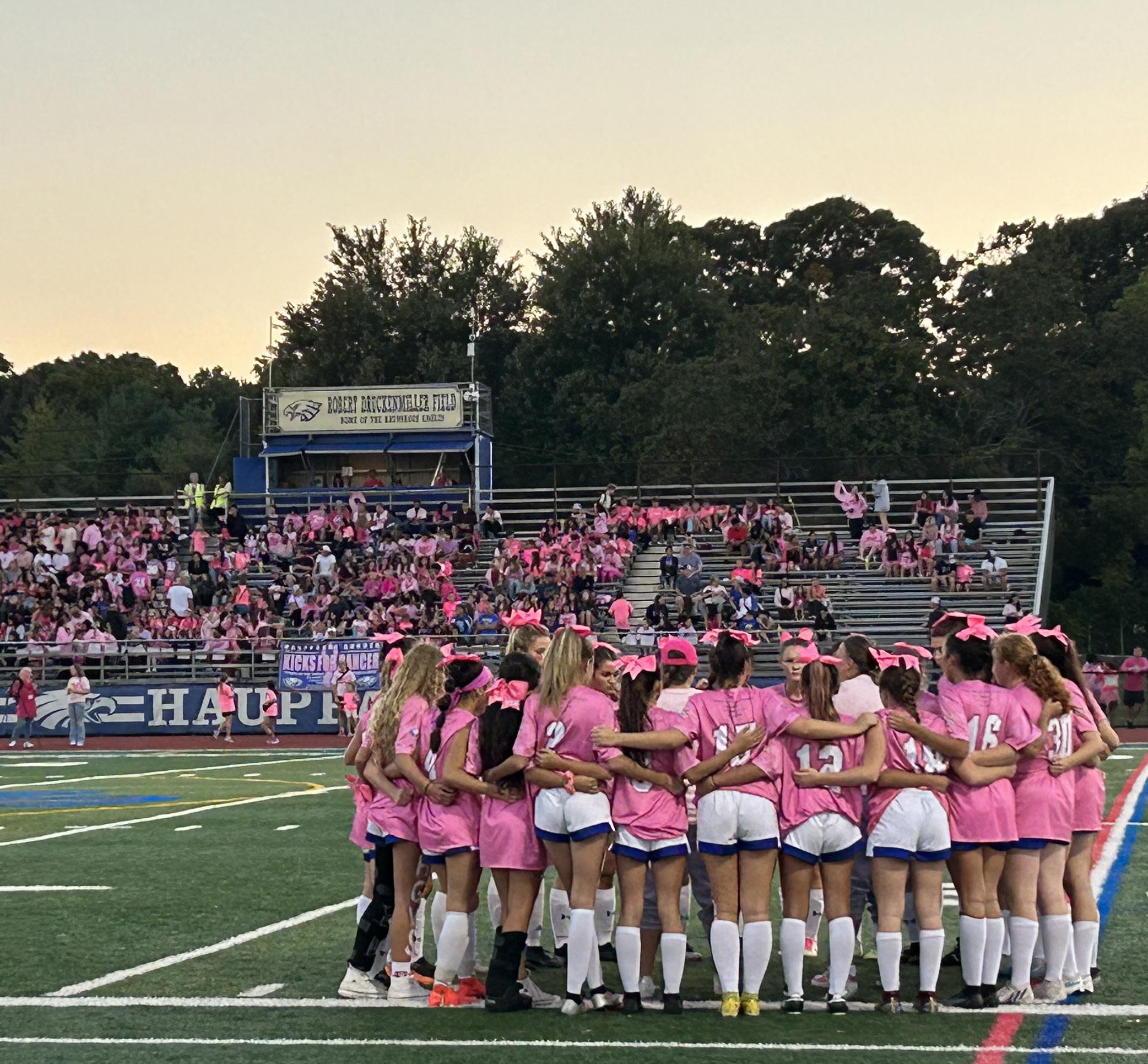 The boys and girls varsity soccer teams played in their annual pink games, the boys at 4:00p.m. and the girls at 6:00p.m. against Westhampton. Both teams came out on top and let up zero goals for the other teams