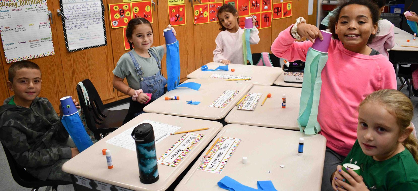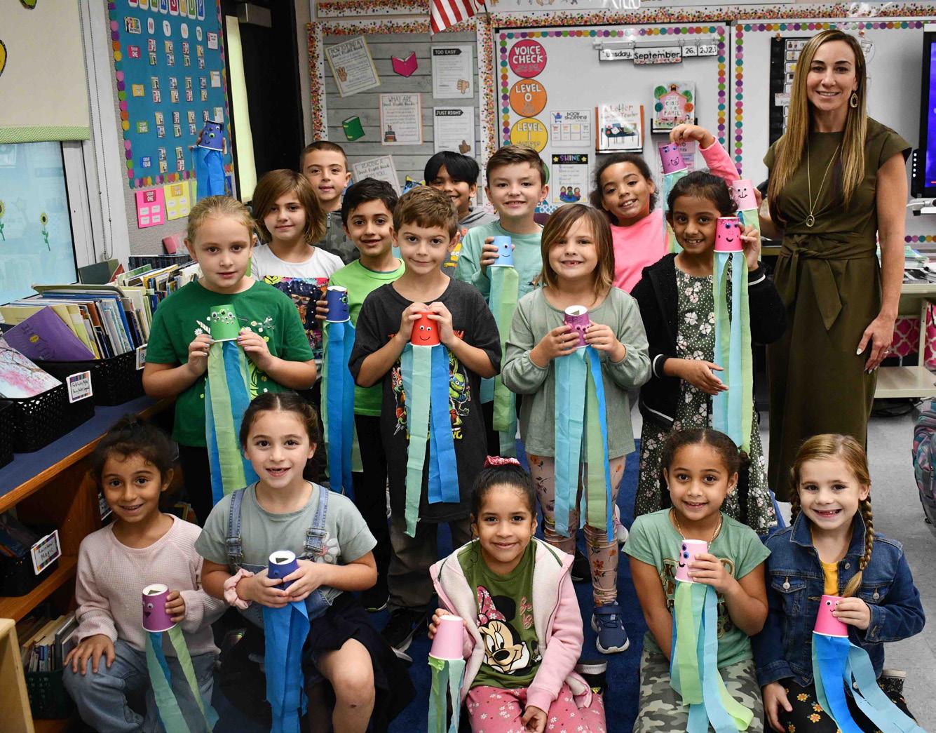 She followed up the reading with an activity, creating “jellyfish breathing cups.” The cups are a clear visual for students to become aware of their breath, using a plastic cup as the jellyfish body and streamers as the tentacles. “As students breathe out, they see the jellyfish’s ‘tentacles’ move and know that they are helping themselves mentally,” said Ms. Marrazzo.