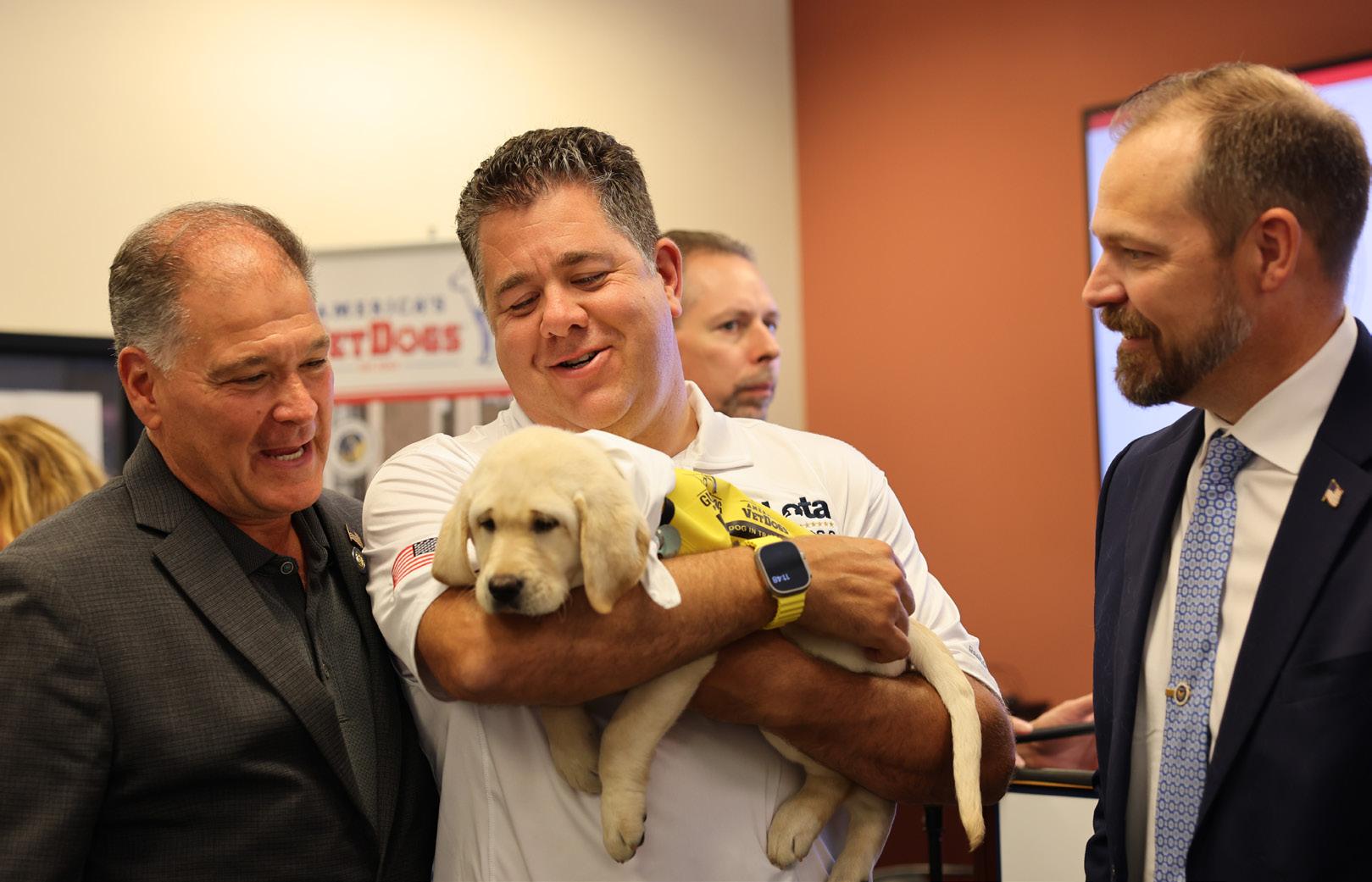 The ceremony concluded with the presentation of VetDogs’ newest recruit, a nine-week-old Labrador Retriever. Her name: Honor.