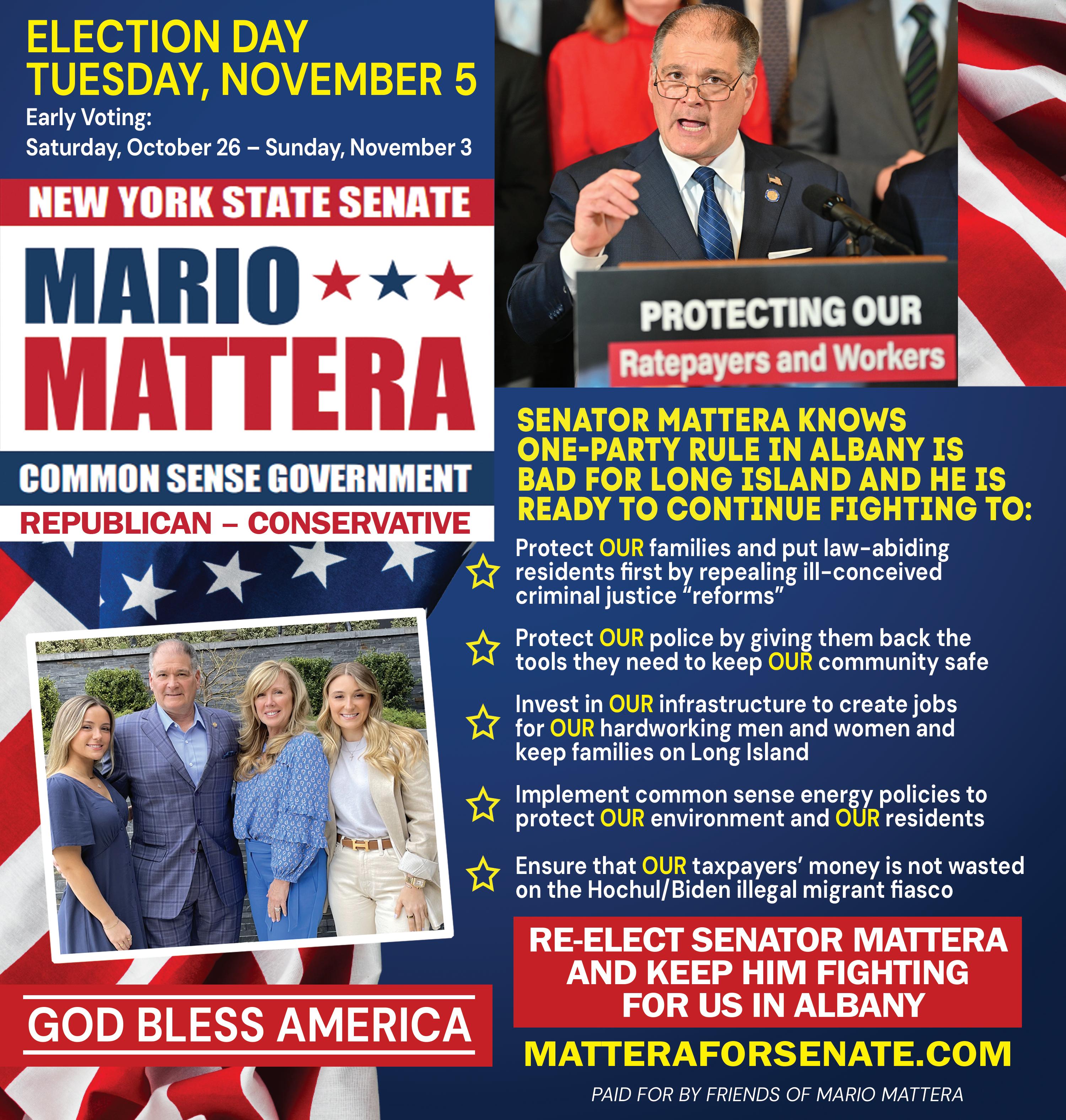 Immigration was the next topic, with Vance calling the current border situation a “historic immigration crisis” due to Harris’ desire to “undo” Trump’s border policies. He cited ninetyfour President Biden (D-DE) executive orders suspending deportations, decriminalizing illegal immigrants, and increasing cases of asylum fraud. Vance also used a phrase heard often here in Suffolk County: “stop the bleeding,” namely when referring to record-level fentanyl overdoses across the country.