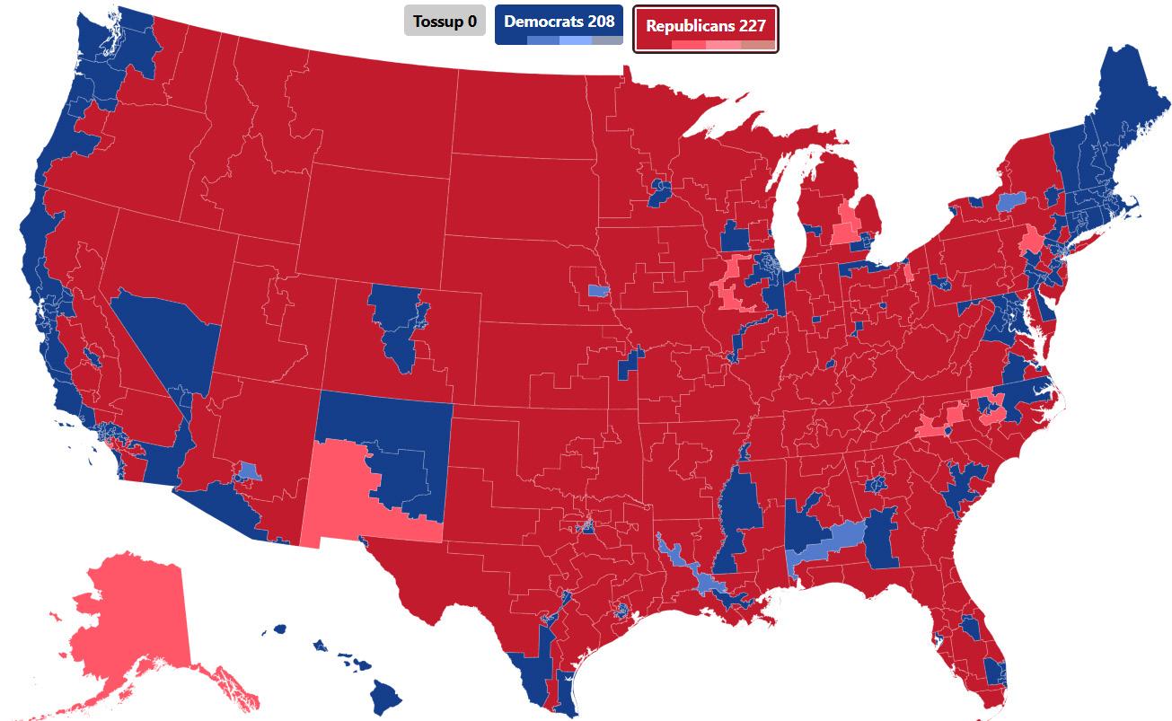 AK-AL: Alaska’s at-large district is a tough one to call, mainly because of Mary Peltola’s (D) incumbency advantage. But polls have shown Nick Begich III (R) catching her in a rematch, and without another Republican candidate spoiling the ballot, we think this is a narrow GOP flip. On the other hand, we wouldn’t be surprised to see Peltola hang on.