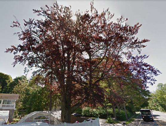 of the lake shore from the 1750s, ordered five Purple European Beech Trees from Scandinavia, and they were shipped in time to be planted for the 200th anniversary. As some may know, one of the trees turned out to be a Copper Red Beech tree (shown as #4), and with notice it, was planted as #2 in succession. During the 1960’s, building began to boom, and two of the Purple Beech trees were taken down for “progress”. Of the three remaining, the first located just east of 7-11 has recently died (shown as #3). The Copper Beech tree of Virginia Schutte had begun to rot. The Indian Princess carving did bring us some bonus years, but time caught up with it. Appropriate Native American practices are being followed as we retire the tree. The last Purple Beech (#5) is thriving and continues to live and represent the people of Lake Ronkonkoma who hold value for its community. The owners of the property wish to hold their privacy. The European Beech tree can live for up to 600 years. The trees selected by our community were all rare, specific to other parts of the world. The odds of a long life in Lake Ronkonkoma were against them, yet they did last and may continue to last for perhaps another lifetime. Be attentive to nature and the universe as a whole.