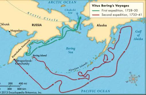 Alaska is first sighted by a Russian expedition led by Danish explorer Vitus Bering.