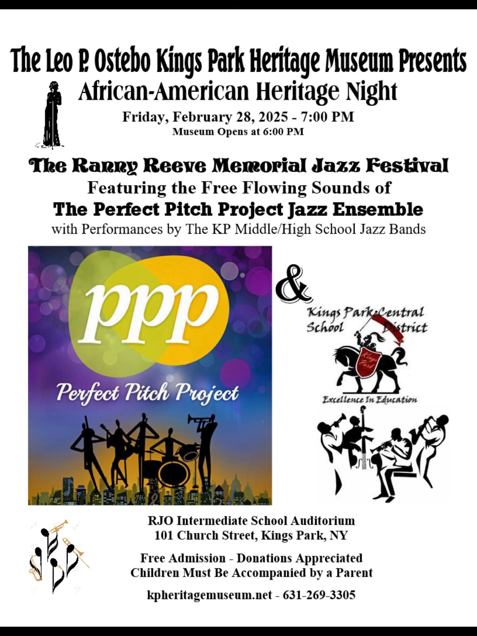 The Leo P. Ostebo Kings Park Heritage Museum invites you to enjoy a night of jazz music at 7:00p.m. on Friday, February 28, at the Kings Park Heritage Museum, 101 Church Street in Kings Park.