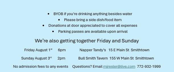 August 7, 2025 7:30pm–9:00pm - Penny Lane - Beatles Tribute Band August 14, 2025 7:30pm–9:00pm - Demolition Band -The Police & Sting Experience Thursday,