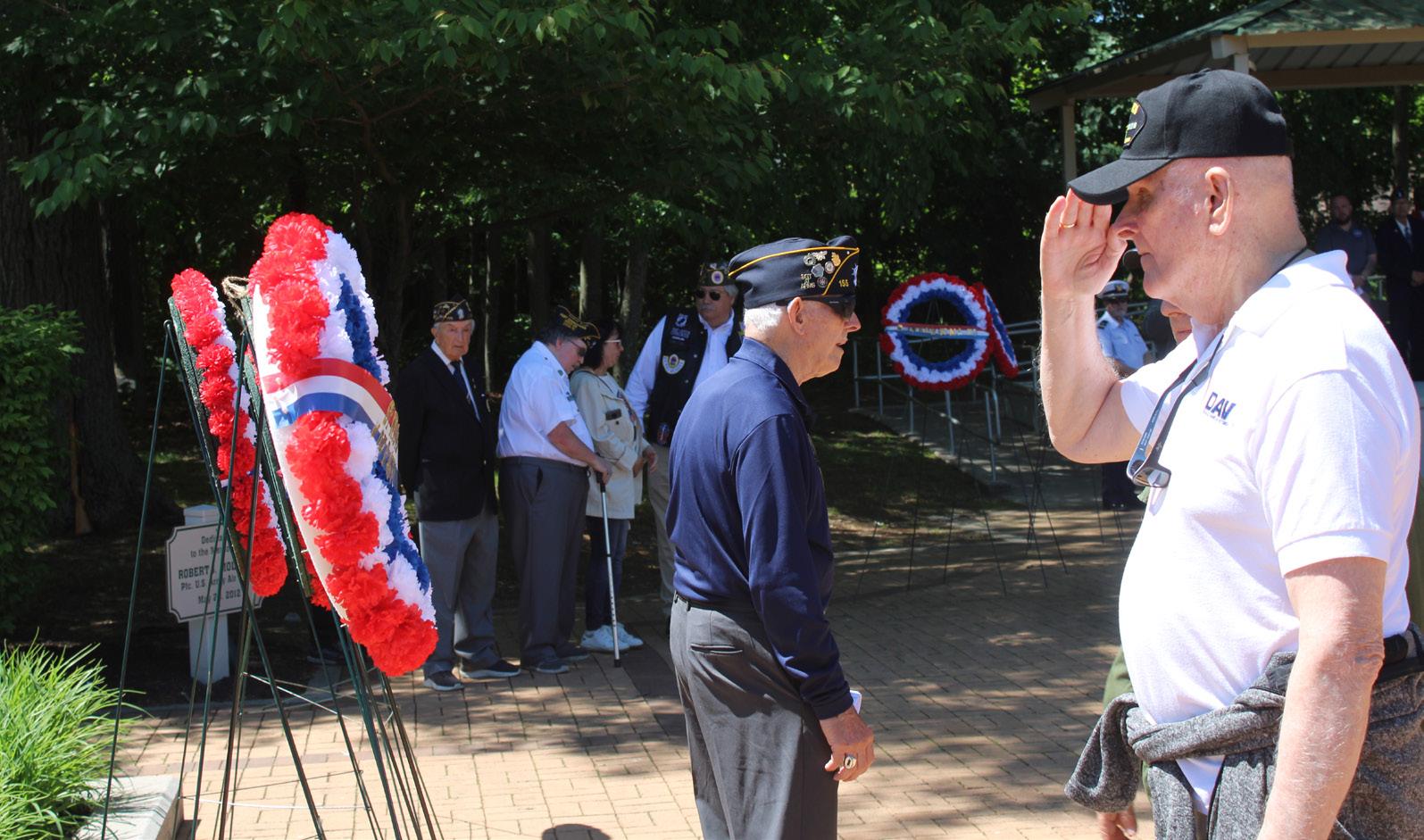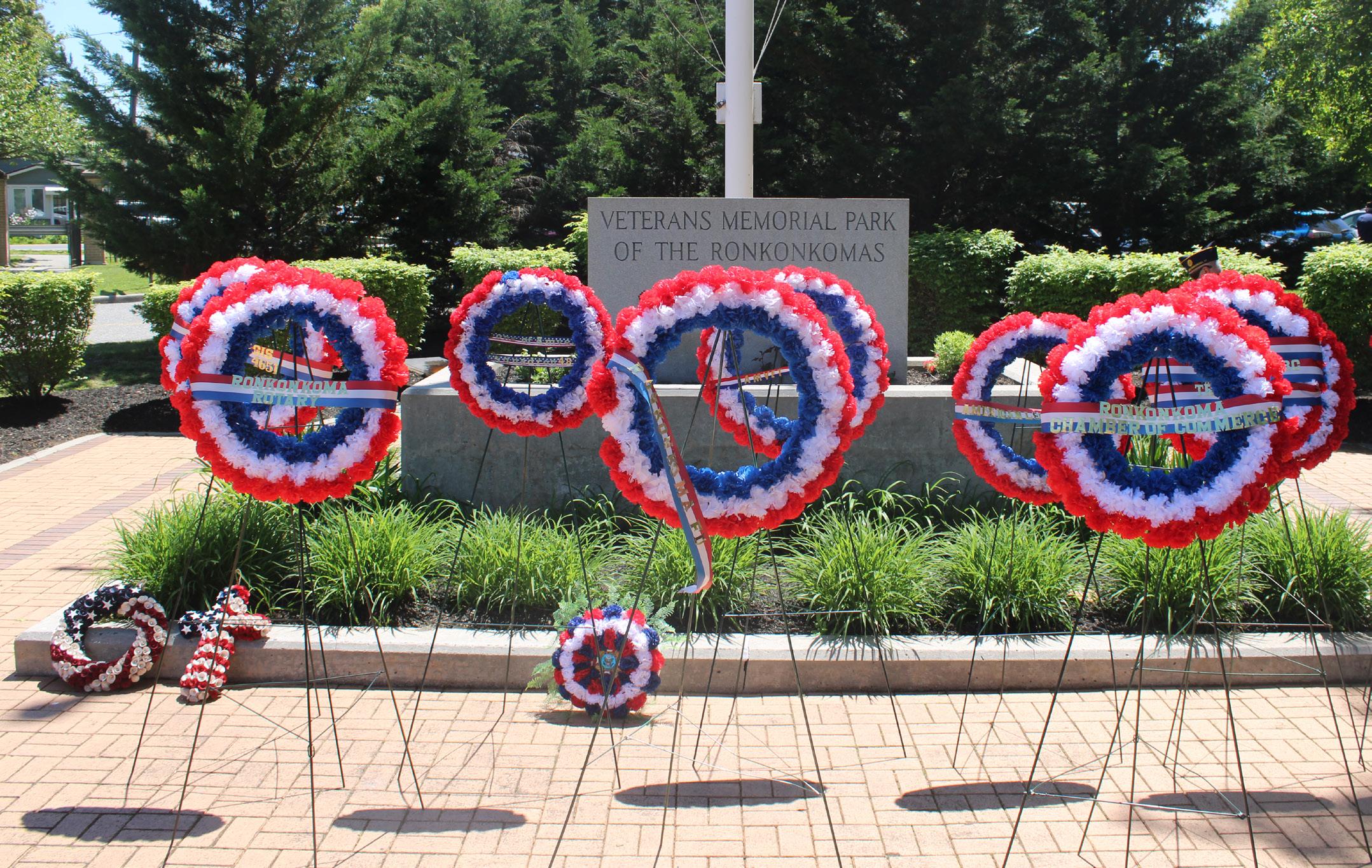 Wreaths were laid at the monument at Raynor Park, including by the participating posts, Paws of War, Ladies Auxiliary, the Ronkonkoma Chamber of Commerce, the Ronkonkoma Rotary Club, and local Boy and Girl Scout troops.