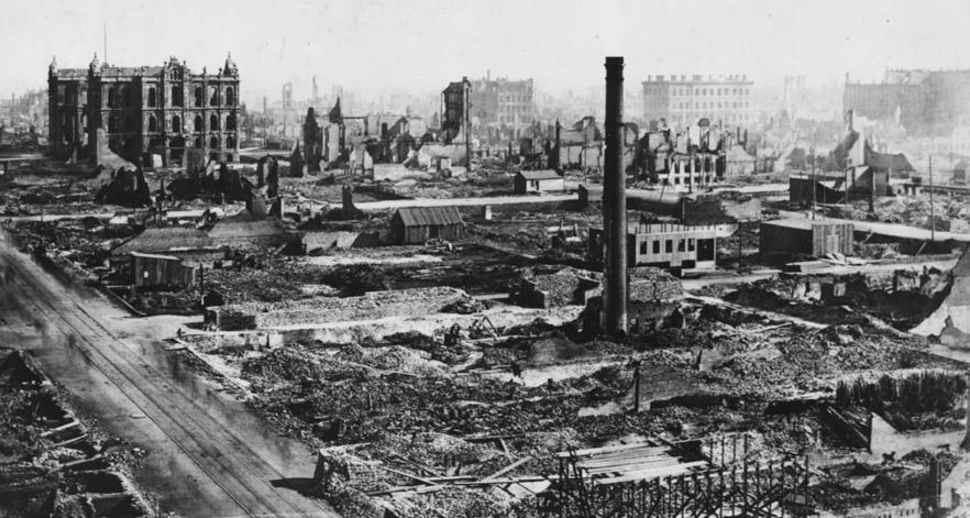 The Great Chicago Fire kills an estimated 300 people and destroys over 4 square miles (10 square km) of buildings and the original Emancipation Proclamation
