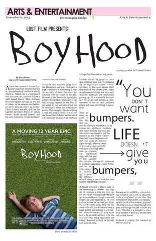 lmost every review of Richard Linklater’s Boyhood describes the film as, “groundbreaking” and that is exactly what it is. Filmed over a 12-year period with the same cast, Boyhood follows a child named Mason (Ellar Coltrane) from kindergarten through his first day at college. As the audience watches Mason grow, they also follow his mother, Olivia (Patricia Arquette) pull her life together, his father, Mason Sr. (Ethan Hawke) finally ground himself, and his sister Samantha (Lorelei Linklater)