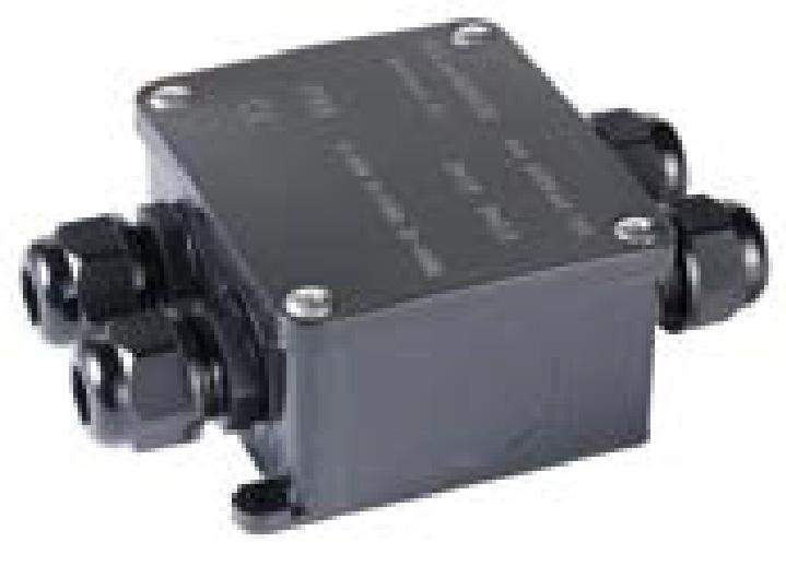 • Boîte de jonction sous-marine en plastique noir, étanchéifiée par résine.