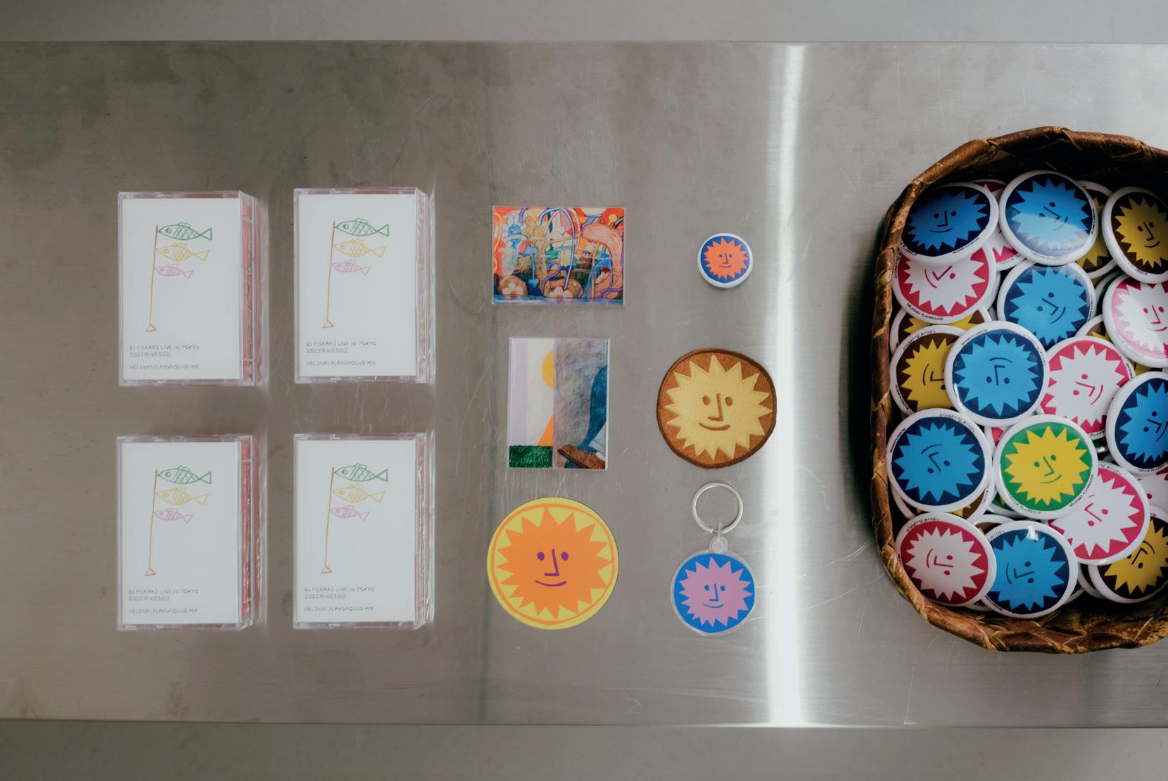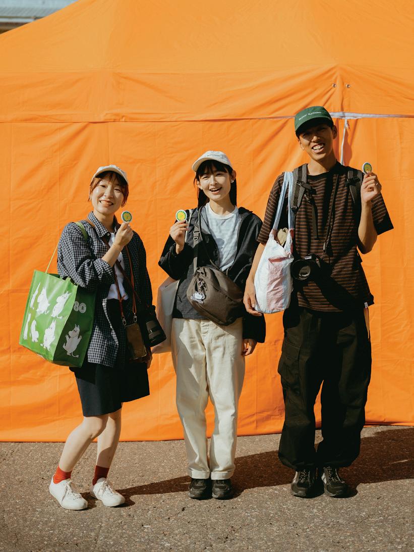 Recycled concrete blocks were used to build a bespoke bar in another area of the pop-up called Kyrö’s Yard, where guests can gather around a large bench made of planks to socialise or enjoy a drink.