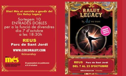 A partir de dijous i fins di vendres, les biblioteques mu nicipals, coincidint amb l’Any Ferrater, proposen visitar l’ex posició bibliogràfica dels llibres de poesia del reusenc, a la Bibli oteca Central Xavier Amorós. També proposen la ruta In Me moriam, a càrrec de Còdol Edu cació, programada per aquest dijous a les 18 h., i l’acte central de les JEP amb la xerrada Els quatre llibres de Ferrater, a càr rec de Jordi Cornudella, a la Bi blioteca Central Xavier Amorós. Pel que fa a les activitats de Reus Promoció, aquestes es concen tren en el cap de setmana. Per dissabte s’ha programat la visita dinamitzada al Gaudí Centre, Gaudí narrat a través de la mi