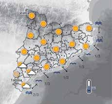 Temperatura La temperatura mínima serà similar, si bé a les Terres de l’Ebre pujarà lleugerament. La màxima baixarà lleuge rament.