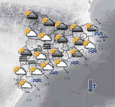 Durant el matí és probable alguna precipitació feble i minsa al vessant nord del Pirineu. La cota de neu voltarà els 1.800 metres.
