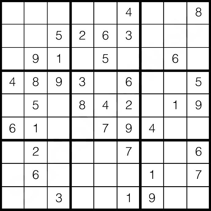 Completeu el taulell, dividit en nou quadrats, omplint les cel·les buides amb un número de l’1 al 9, sense repetir cap número en una mateixa fila ni en una mateixa columna, ni dins de cada quadrat.