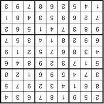 Completeu el taulell, dividit en nou quadrats, omplint les cel·les buides amb un número de l’1 al 9, sense repetir cap número en una mateixa fila ni en una mateixa columna, ni dins de cada quadrat.
