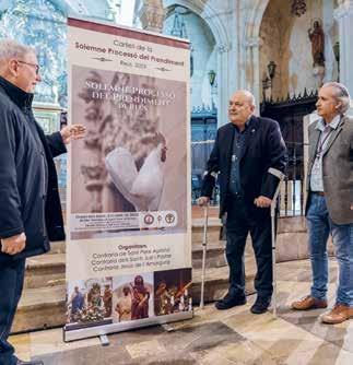 de presentació dels nous faldons del pas, que va tenir lloc a l’església de Natzaret. «Silvia Grau i la seva mare, Maria del Carme Alasà, els han confeccionat», indica Pallejà, qui va remarcar que «són gent de la casa». La renovació dels teixits s’ha aprofitat per canviar també el característic granat dels antics faldons pel negre: «S’ha canviat l’estètica per donar més seriositat al pas, és un color més sobri i amb prestància».