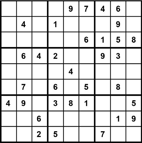 Completeu el taulell, dividit en nou quadrats, omplint les cel·les buides amb un número de l’1 al 9, sense repetir cap número en una mateixa fila ni en una mateixa columna, ni dins de cada quadrat.