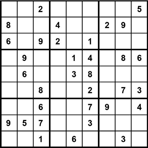 Completeu el taulell, dividit en nou quadrats, omplint les cel·les buides amb un número de l’1 al 9, sense repetir cap número en una mateixa fila ni en una mateixa columna, ni dins de cada quadrat.