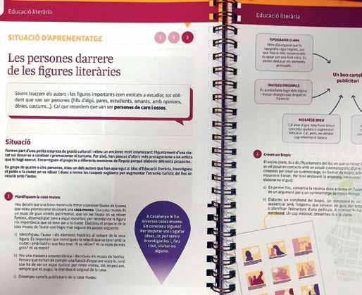 Dues pàgines del nou llibre de llengua catalana de primer de batxillerat.