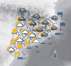 De matinada no es descarta algun ruixat feble a punts del litoral i prelitoral. Entre mig matí i el vespre s’esperen xàfecs a punts del litoral i prelitoral central i sud, Catalunya Central i altres punts de l’interior.