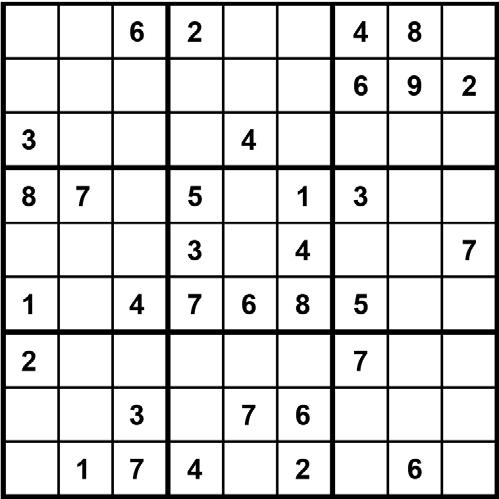 Completeu el taulell, dividit en nou quadrats, omplint les cel·les buides amb un número de l’1 al 9, sense repetir cap número en una mateixa fila ni en una mateixa columna, ni dins de cada quadrat.