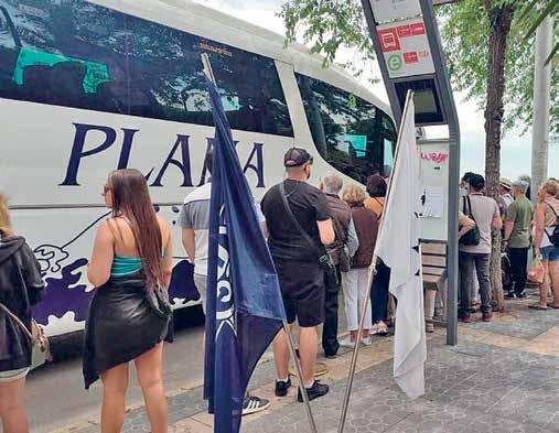 fent cua a la Rambla Vella per pujar al bus que els tornava