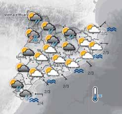 Durant el matí s’esperen ruixats dispersos de distribució irregular a la meitat oest, localment amb tempesta, i són probables a la resta del territori. A partir de la tarda s’esperen ruixats i alguns xàfecs al quadrant nord-oest nord i a l’extrem sud. Seran d’intensitat entre feble i moderada, i acumularan quantitats entre minses i poc abundants de precipitació, si bé localment és possible que siguin d’intensitat forta.