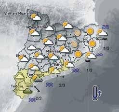 Durant el matí són possibles alguns febles ruixats a punts de la meitat sud i oest del territori. A partir de migdia és probable algun ruixat al terç oest i al final de la jornada algun al Pirineu i Prepirineu occidental.