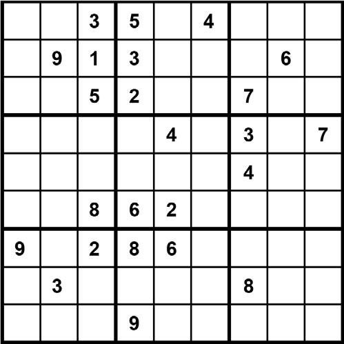 Completeu el taulell, dividit en nou quadrats, omplint les cel·les buides amb un número de l’1 al 9, sense repetir cap número en una mateixa fila ni en una mateixa columna, ni dins de cada quadrat.