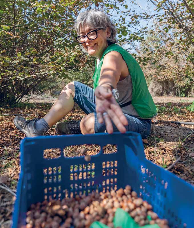 Imatge d’un dels voluntaris de la Fundació Espigoladors recollint avellanes.