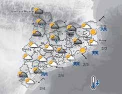 Màxima Mínima Estat del cel Cel poc ennuvolat en general fins a mig matí, si bé estarà molt ennuvolat o cobert al quadrant nord-oest i a punts de la meitat sud del litoral. A partir d’aleshores creixeran nuvolades a punts de muntanya alhora que n’arribaran per l’oest i el cel quedarà entre mig i molt ennuvolat amb intervals de cobert, tret del litoral central i nord on romandrà poc ennuvolat. Precipitacions