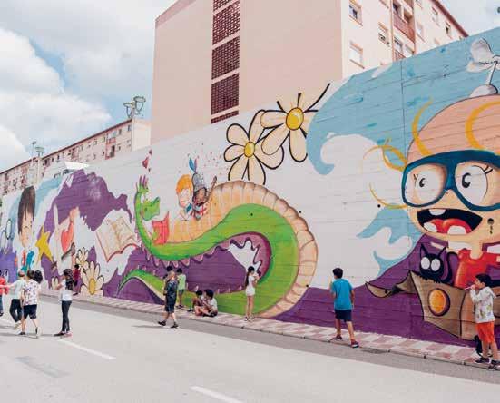 Els alumnes de tots els centres de Sant Pere i Sant Pau participen en un mural reivindicatiu