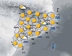 Estat del cel Ambient assolellat en conjunt. A partir de migdia creixeran nuvolades al Pirineu i Prepirineu Oriental, nord de la Catalunya Central i a altres punts de la resta del Pirineu i Prepirineu. A banda, de matinada hi haurà alguns núvols baixos al vessant nord del Pirineu, així com a l’inici i al final del dia a punts del litoral sud. Temperatura Temperatura mínima lleugerament més alta, sobretot a punts del litoral i terç sud. Per la seva banda, la temperatura màxima serà lleugerament més alta. A Ponent, els valors més alts de temperatura màxima voltaran els 40 ºC.
