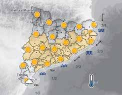 La temperatura mínima serà semblant, o localment pujarà de forma lleugera, amb valors mínims que rondaran entre els 20 i 25 ºC a molts punts del territori. La màxima serà lleugerament més baixa en general.