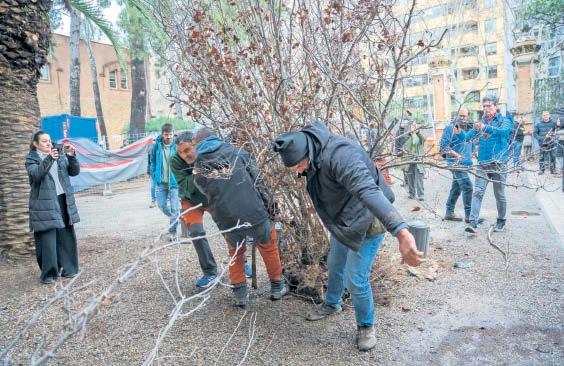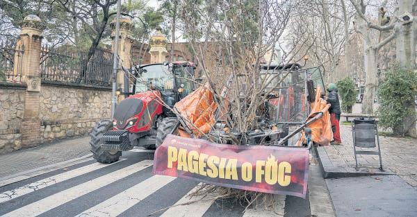 Pagesos del sector van protestar ahir deixant avellaners morts davant el Departament d’Agricultura i cremant-ne d’altres davant Aigües de Reus