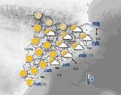 Màxima Mínima Estat del cel Durant el matí el cel estarà serè o localment poc ennuvolat pel pas d’algunes bandes de núvols alts i prims, si bé hi haurà intervals de núvols baixos al quadrant nord-est i punts del nord de la depressió central. A partir de migdia els núvols alts augmentaran i deixaran el cel poc o puntualment mig ennuvolat, alhora que hi haurà alguns núvols d’evolució a punts de quadrant nord-est i resta del Pirineu i Prepirineu. Independentment, hi haurà alguns núvols baixos a trams del litoral. Temperatura La temperatura mínima serà semblant o lleugerament més baixa en general. La màxima serà semblant o lleugerament més alta.