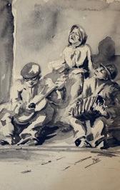 especialment l’aquarel·la, el dibuix i el gravat. En la seva obra, que va retratar essencialment la quotidianitat popular i el món de la música i la dansa, també hi ha referències a elements vallencs com les calçotades, els castellers, els balls i oficis tradicionals o les gitanes.