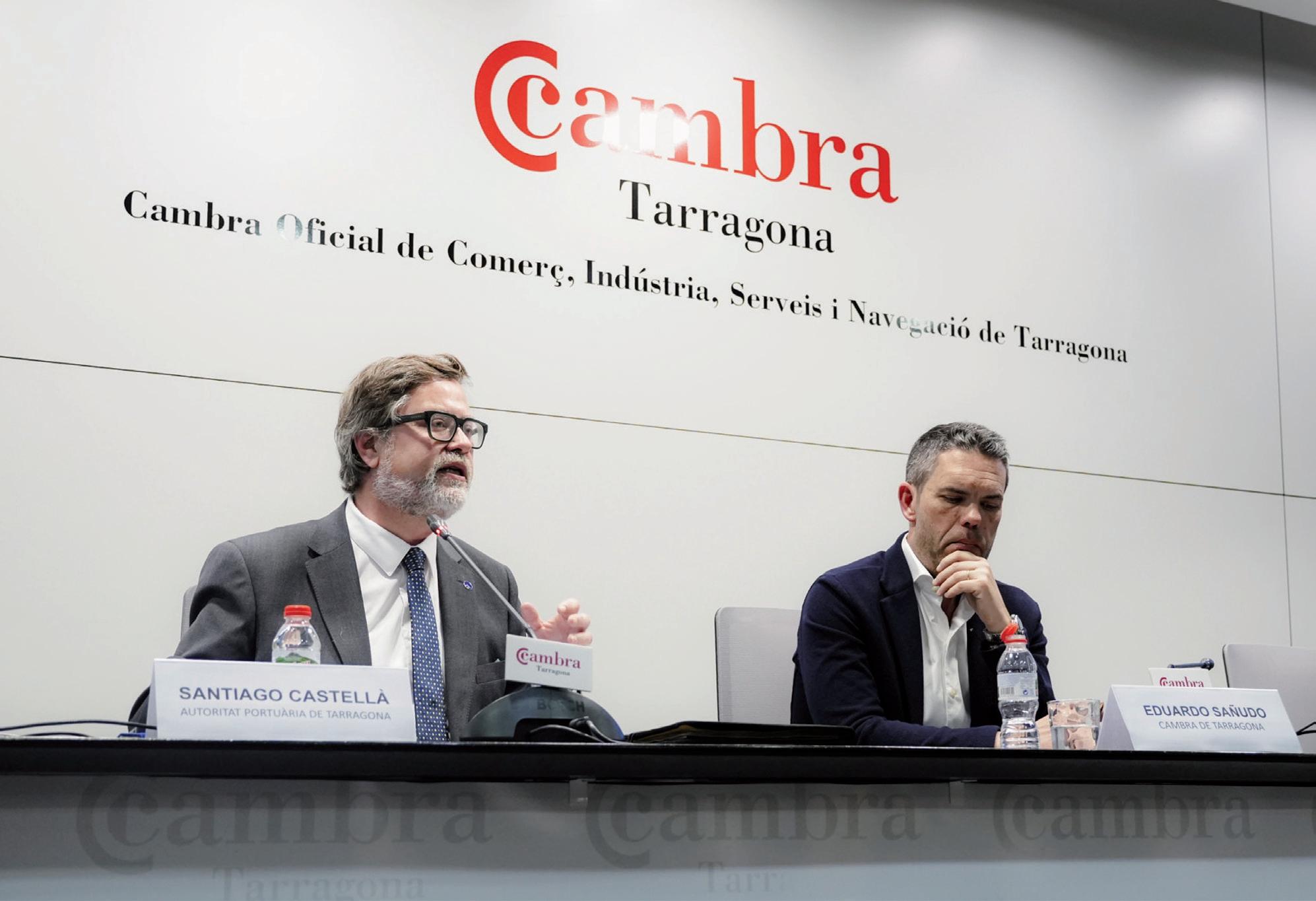 El president del Port de Tarragona, Santi Castellà, i el membre del Comitè Executiu de la Cambra, Eduardo Sañudo, en la jornada del ‘Bon dia’. Cedida