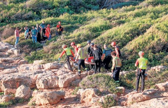 Els Bombers van rescatar ahir una parella a la Cala de la Roca Plana. L’home va perdre la vida i la dona va ser hospitalitzada
