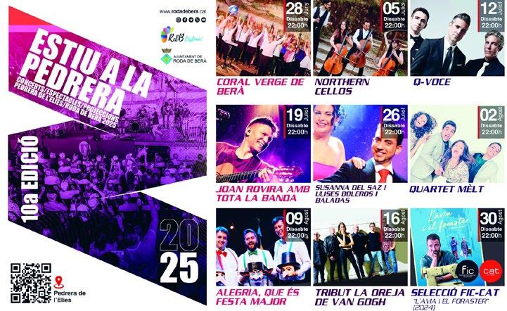 Més enllà de tots els atractius que Roda de Berà, les seves platges i les seves activitats d’oci ofereixen durant l’estiu als seus veïns i visitants, el municipi ha programat, un any més –i ja en van deu–un atractiu programa d’activitats culturals per als mesos de més calor i ho ha fet en un entorn fresc i únic com és la Pedrera de l’Elies. L’espai d’on es creu que van sortir els carreus de l’Arc de Berà serà un dels més actius de Roda des d’aquest dissabte, 28 de juny, quan la Coral Verge de Berà oferirà el primer concert del cicle ‘Estiu a la Pedrera’, que s’allargarà fins a final d’agost.
