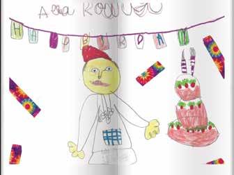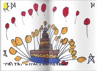 tots els treballs que conserven com a record d’aquella celebració. En ells, els infants hi han dibuixat, amb la seva mirada particular, els dos gegants més veterans del poble, així com el pastís d’aniversari i altres records de la festa.