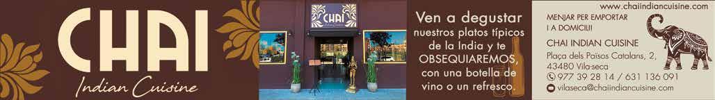 28 d’abril de 2023 núm. 126 www.diarimes.com Estamos en Vila-Seca: Av/ Ramón D'Olzina, 32 Vila-Seca. 43480 CONFÍE EN INELSA ZENER PARA EL MANTENIMIENTO DE SU ASCENSOR - Mantenimiento multimarca. - Recambios originales. - Garantía de servicio. - El 98.7% de nuestros clientes renueva cada año. tarragona@inelsazener.com 977 22 65 81 www.inelsazener.com C.S.
