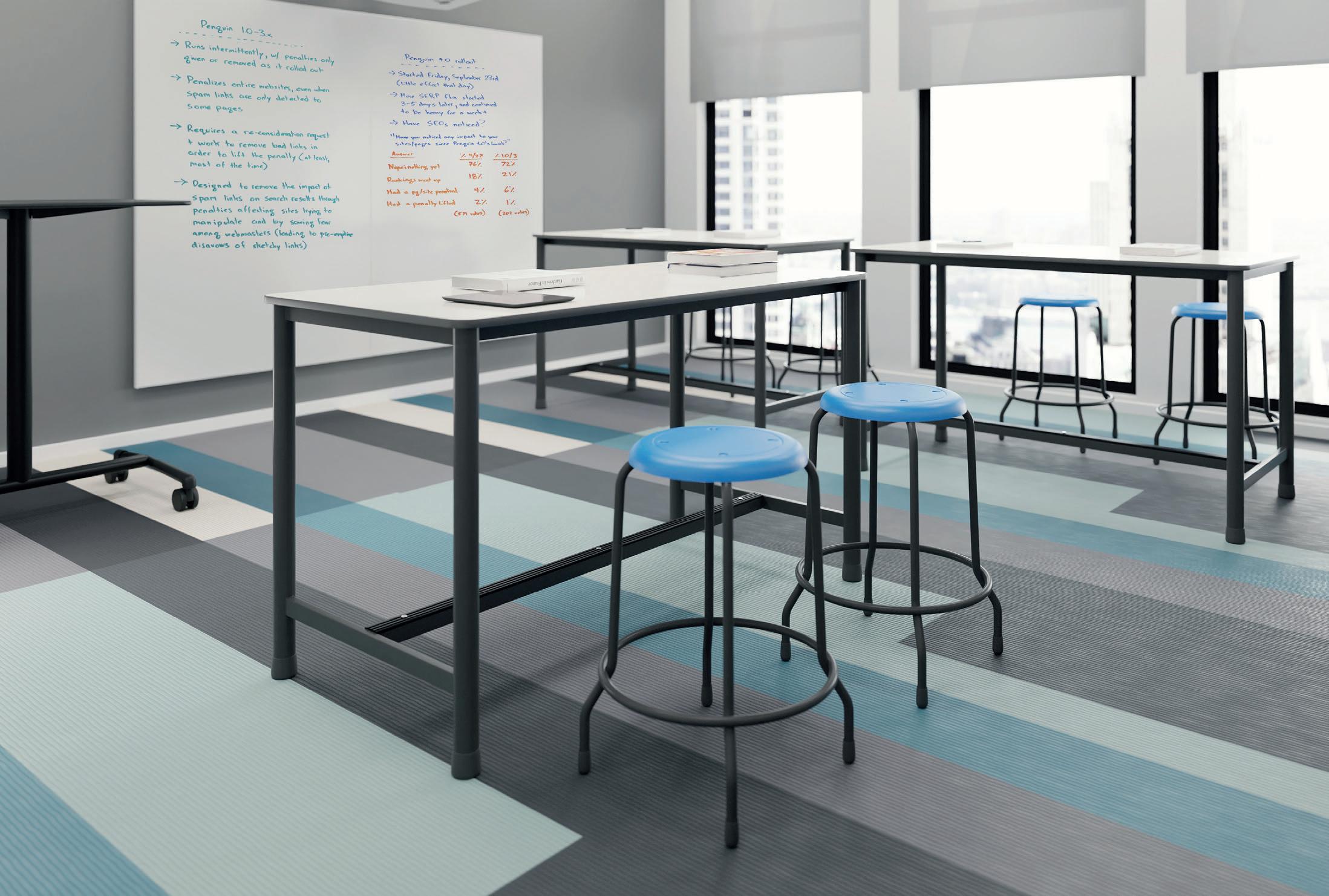 All 4-legged collective tables are produced with fixed tips or optionally with wheels.